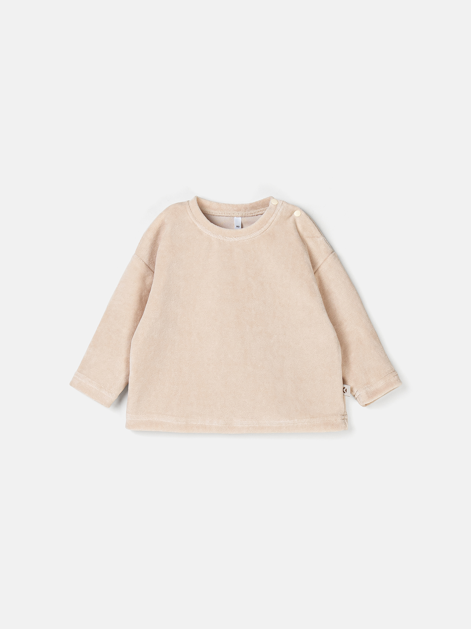 Джемпер из трикотажного велюра – мягкий и уютный вариант для малышей на каждый день.