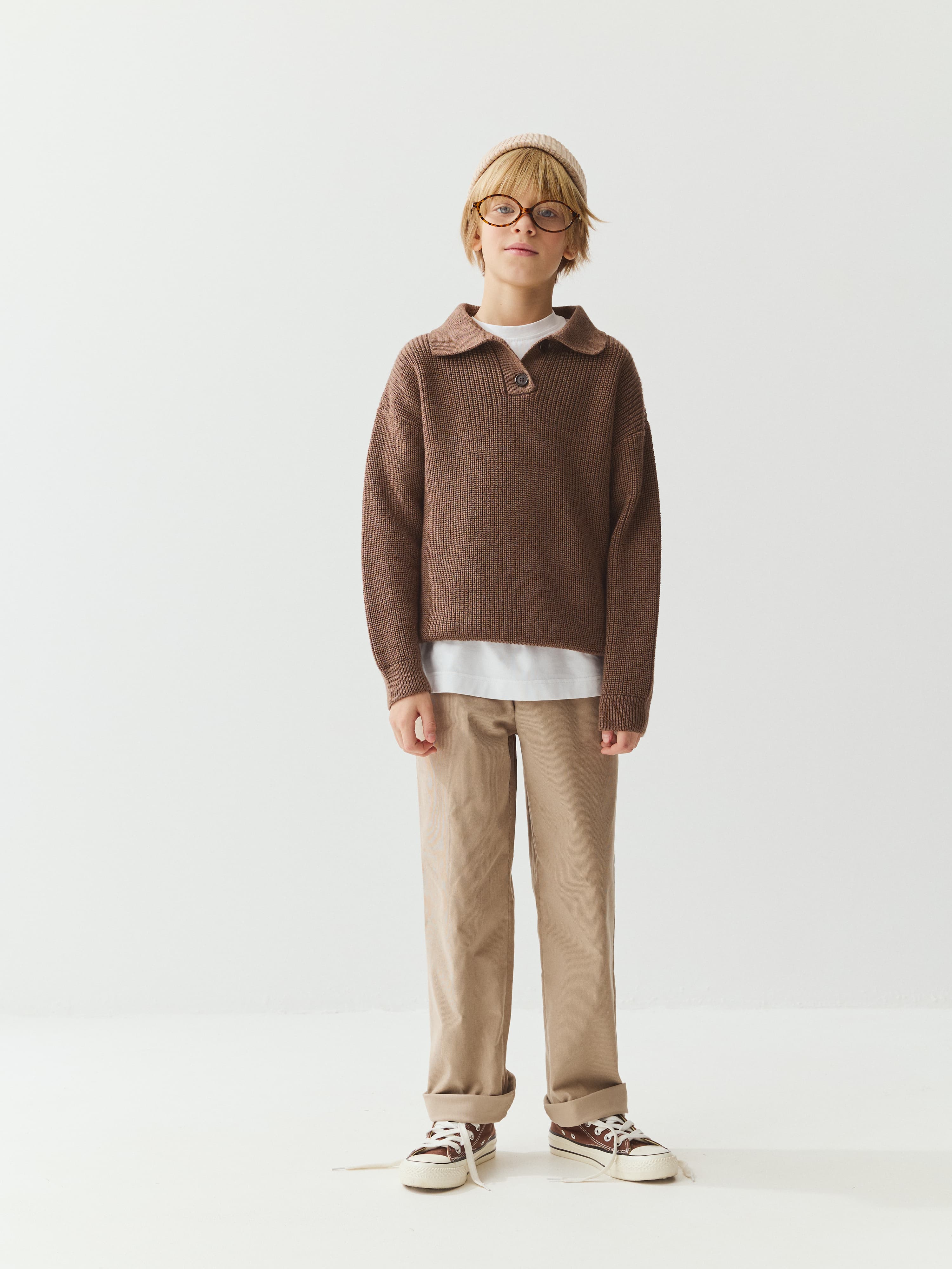 Короткая планка с застёжкой на пуговицы и отложной воротник добавляют джемперу универсальности – можно носить нараспашку или застёгнутым, в зависимости от настроения.