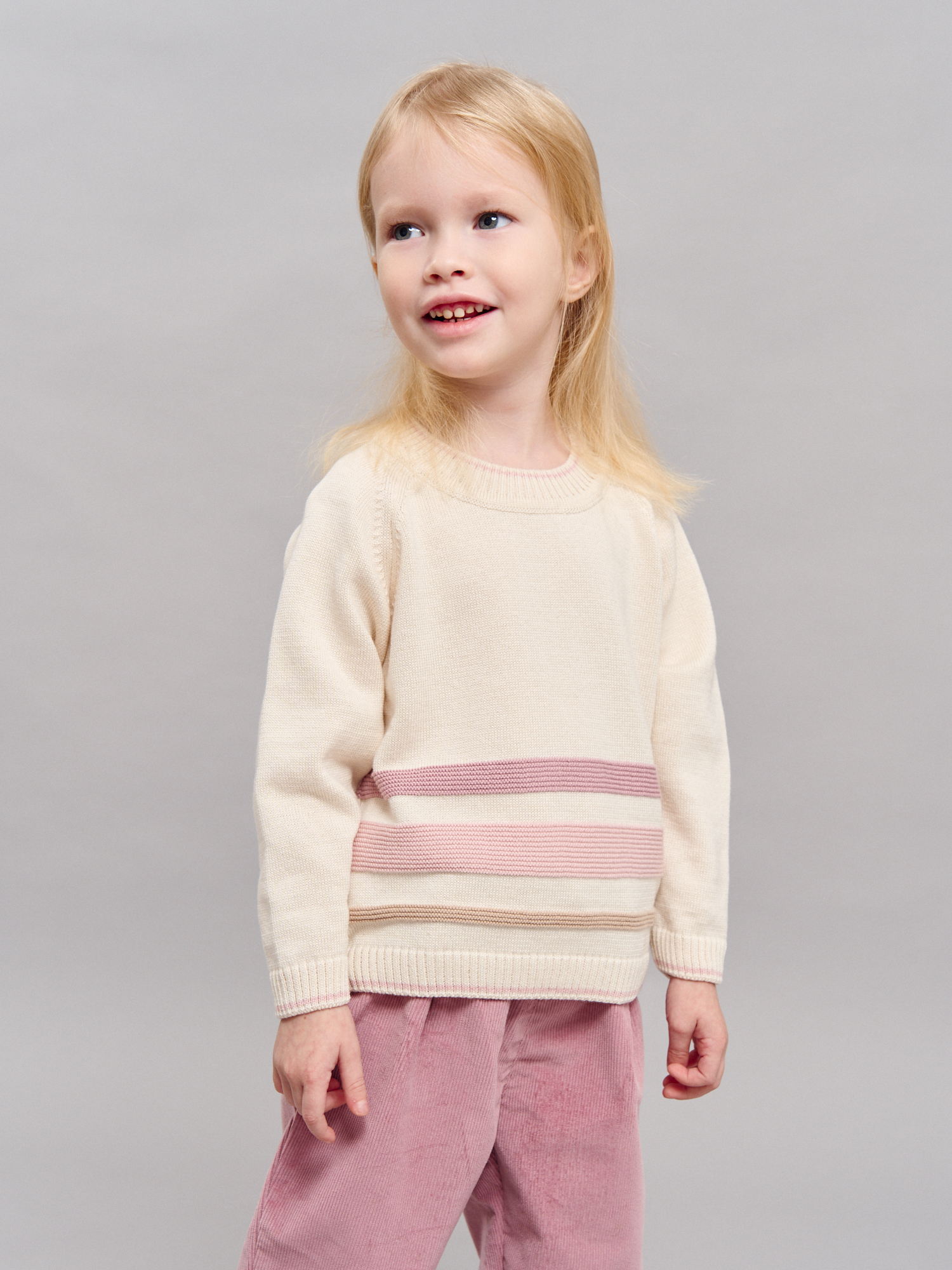 Вязаный джемпер с акцентными полосками — уютная и практичная вещь для прогулок, красивых фотосессий и уюта.