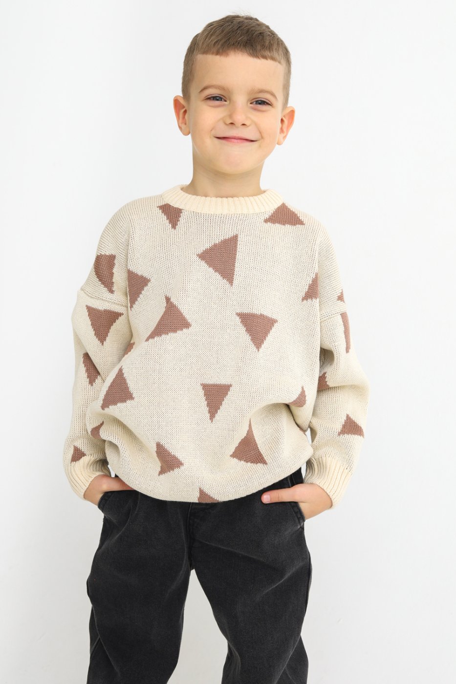 Джемпер вязаный детский Треугольники экрю