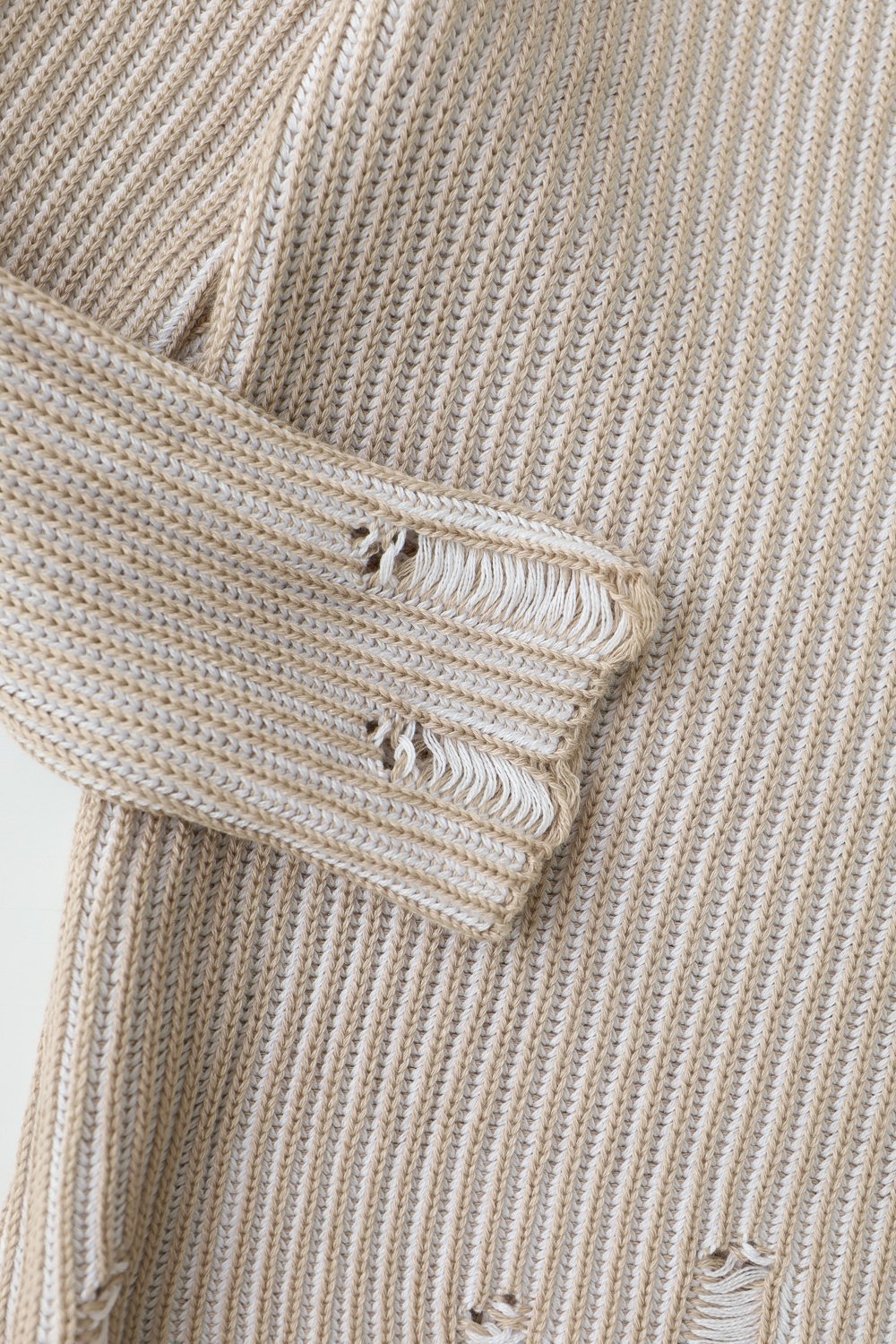 Эффектное двухцветное плотное переплетение с выразительными полосами. Длинные рукава. Дырки на манжетах рукавов и по низу изделия.