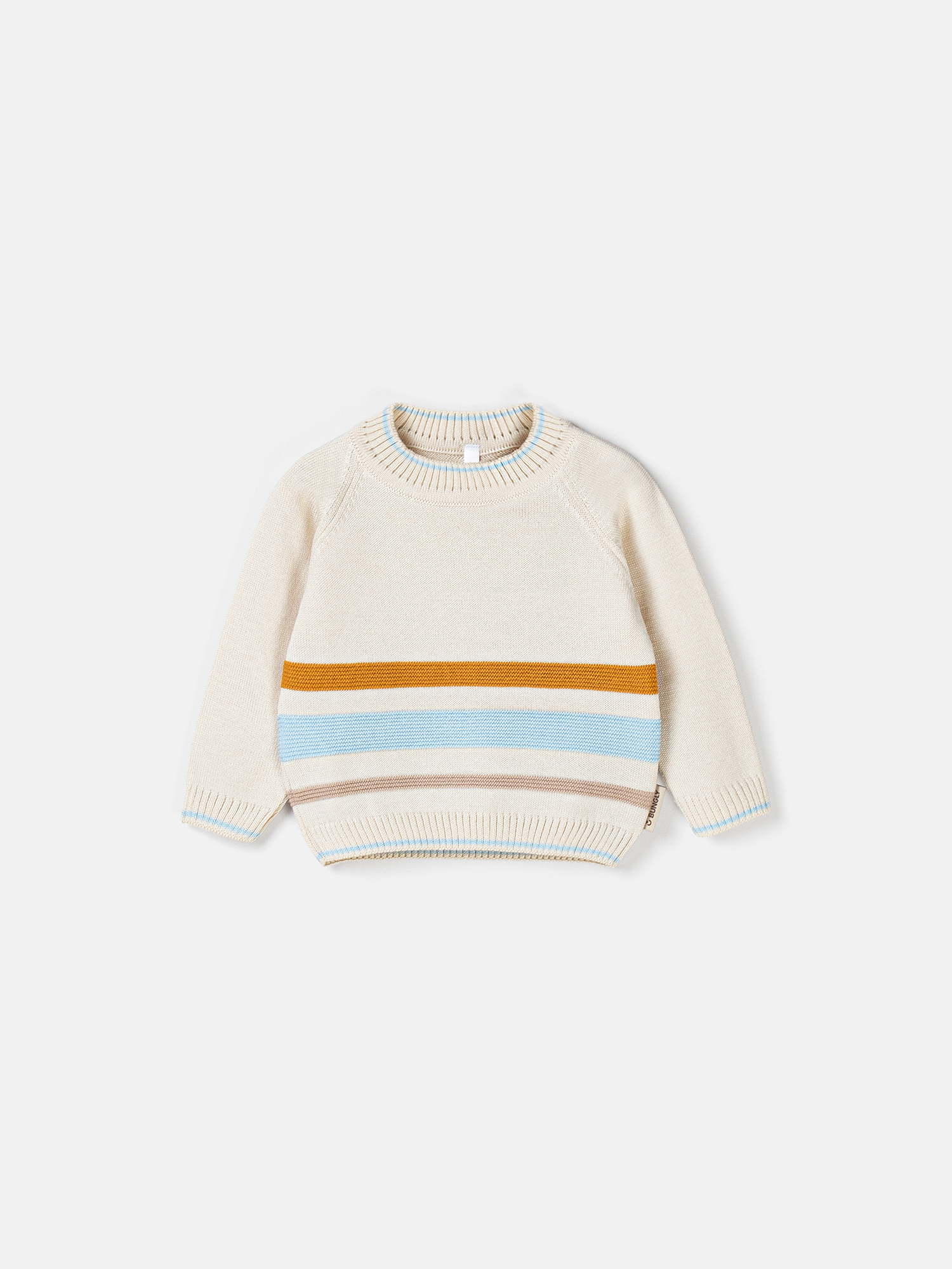 Вязаный джемпер с акцентными полосками — уютная и практичная вещь для прогулок, красивых фотосессий и уюта.