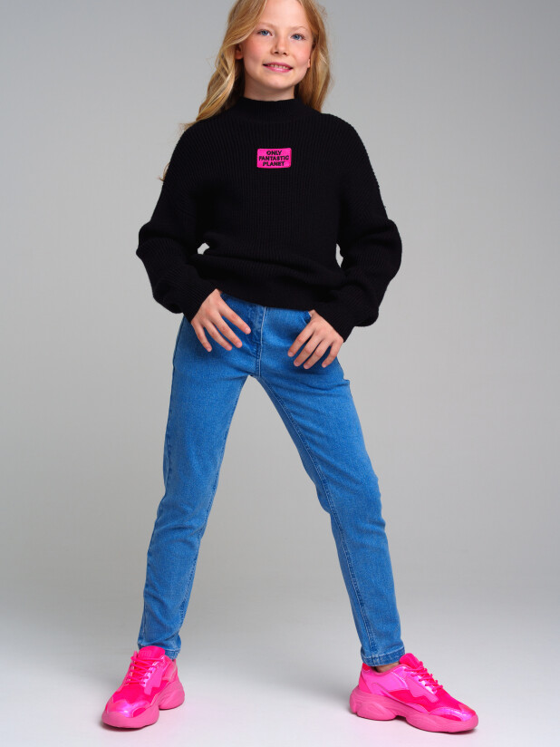 Джинсы из эластичного денима. Посадка regular fit – классический крой со слегка зауженным силуэтом от колена. Комфортная посадка за счет внутренней утяжки. Застежка на молнию и пуговицу.