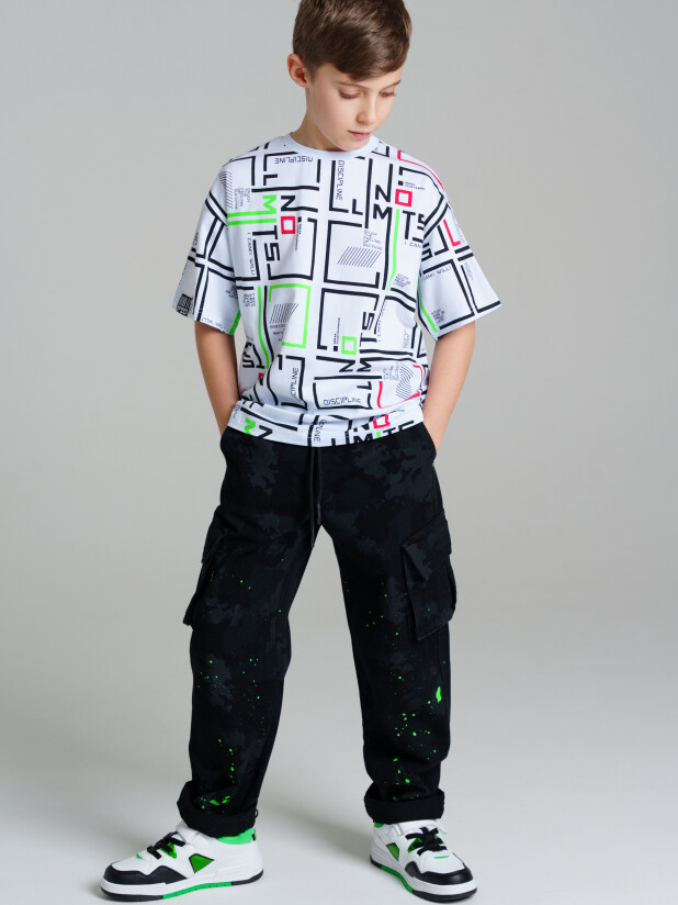 Джинсы из эластичного денима. Посадка comfort fit – свободный крой брючин. Боковые карманы и карманы с клапанами. Эластичный пояс с тесьмой позволяет легко надевать джинсы и утягивать до идеальной посадки в зависимости от комплекции ребенка.
