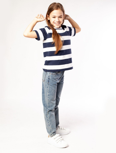 Джинсы mom-fit выполнены из мягкого прочного хлопка, который пропускает воздух и быстро отводит лишнюю влагу. В ткань добавили эластан, поэтому вещь хорошо держит форму и не сковывает движения. Модель дополнена искусственными потертостями и высококачественной металлической фурнитурой с логотипом бренда.