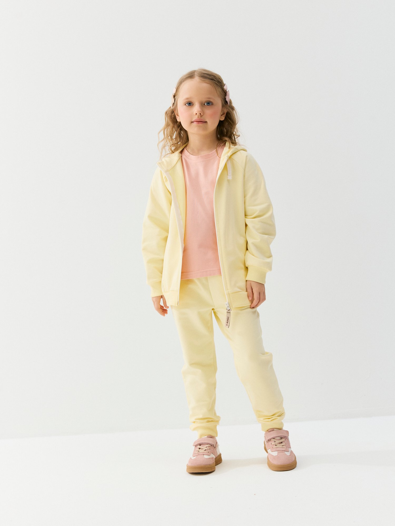 Пояс на резинке мягко фиксирует джоггеры, не давит на животик и позволяет быстро переодеть ребенка после прогулки или игр.