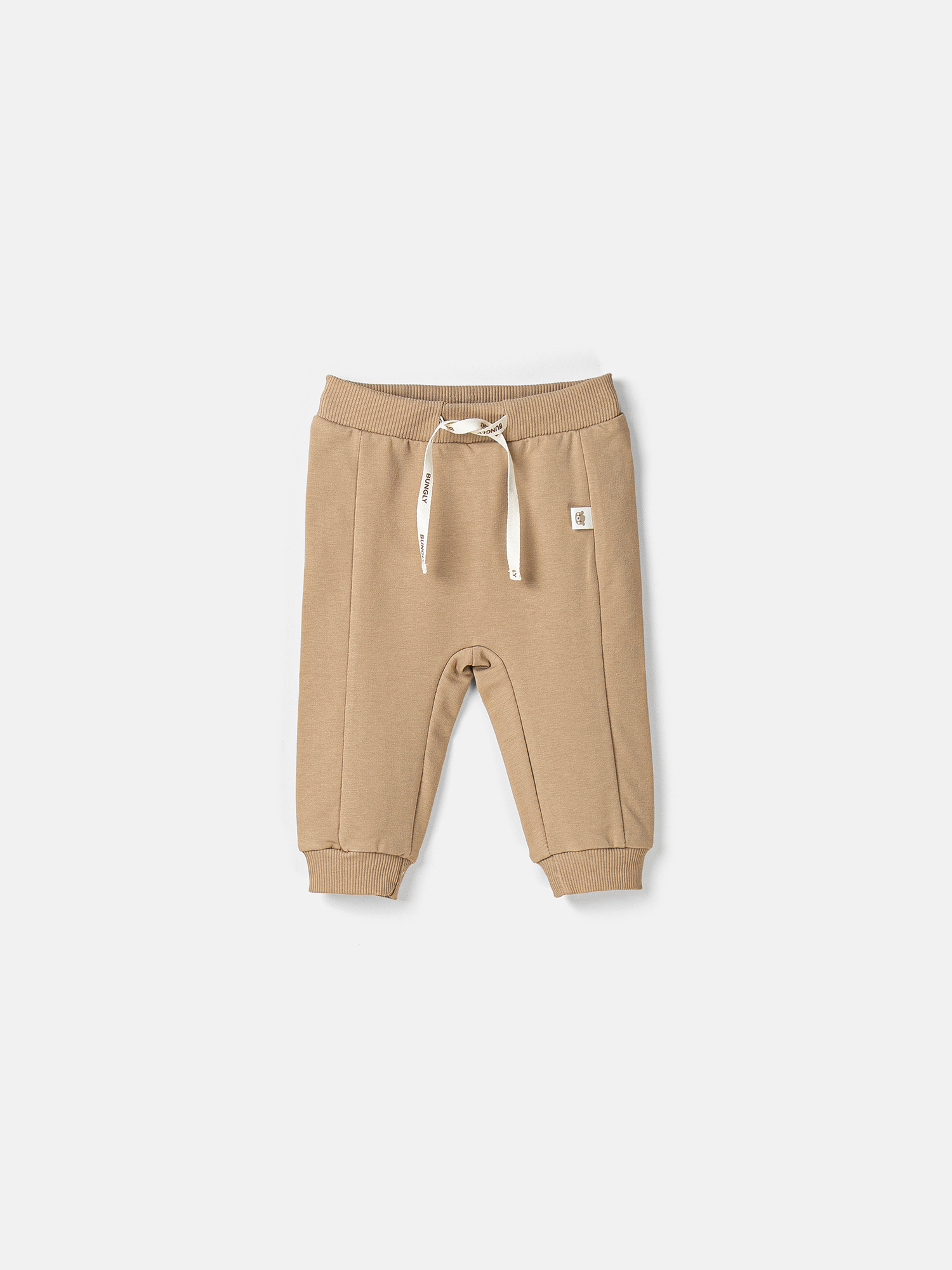 Пояс на резинке и утяжке со шнурком мягко фиксирует джоггеры, не давит на животик и позволяет быстро переодеть ребенка после прогулки или игр.