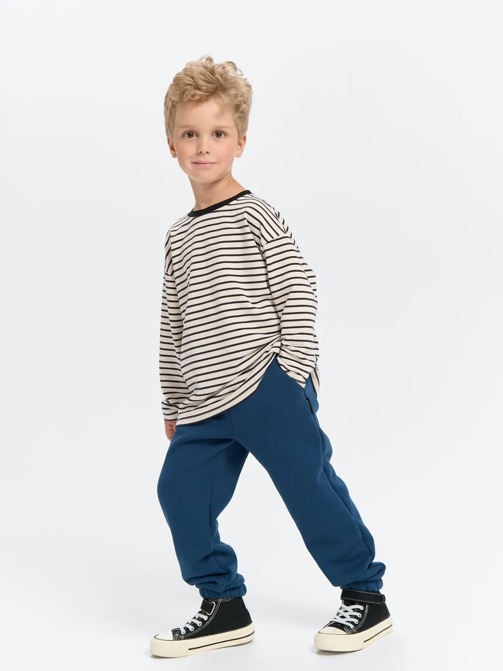 Джоггеры из футера с начёсом – универсальное решение для любого гардероба осенью и весной. Удобно надеть утром в садик и не только, после – отправиться на кружки или к друзьям в гости.