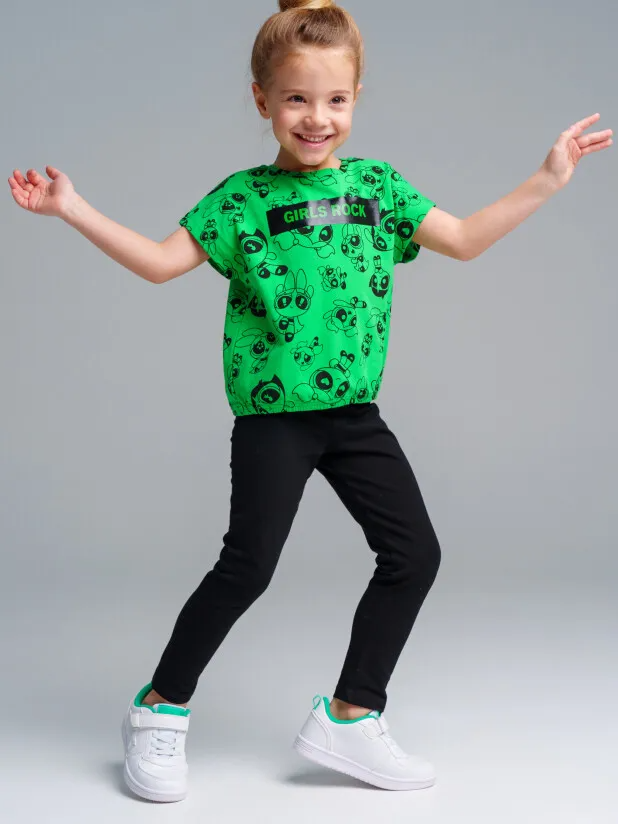 Футболка из качественного и приятного на ощупь трикотажа джерси. Высокое содержание хлопка 95%. Благодаря наличию эластана в составе ткани изделие проще в уходе и держит форму. Эластичный пояс по талии.
