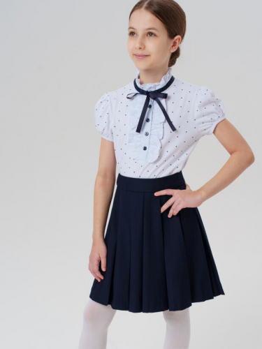 Эта нарядная белая блузка для школы с коротким рукавом подарит комфорт и уверенность на уроках, линейках и школьных праздниках. Материал — качественный трикотаж джерси с высоким содержанием хлопка — мягкий, гипоаллергенный и приятный на ощупь. Благодаря добавлению эластана блузка отлично держит форму, не вытягивается и легко переносит многократные стирки.