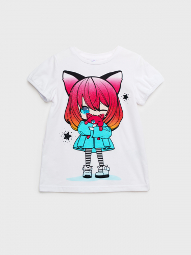 Футболка детская для девочки. Футболка с высоким содержанием хлопка 95%. Благодаря наличию эластана в составе ткани изделие проще в уходе и держит форму. Разрезы. Модель выполнена из качественного и приятного на ощупь трикотажа.