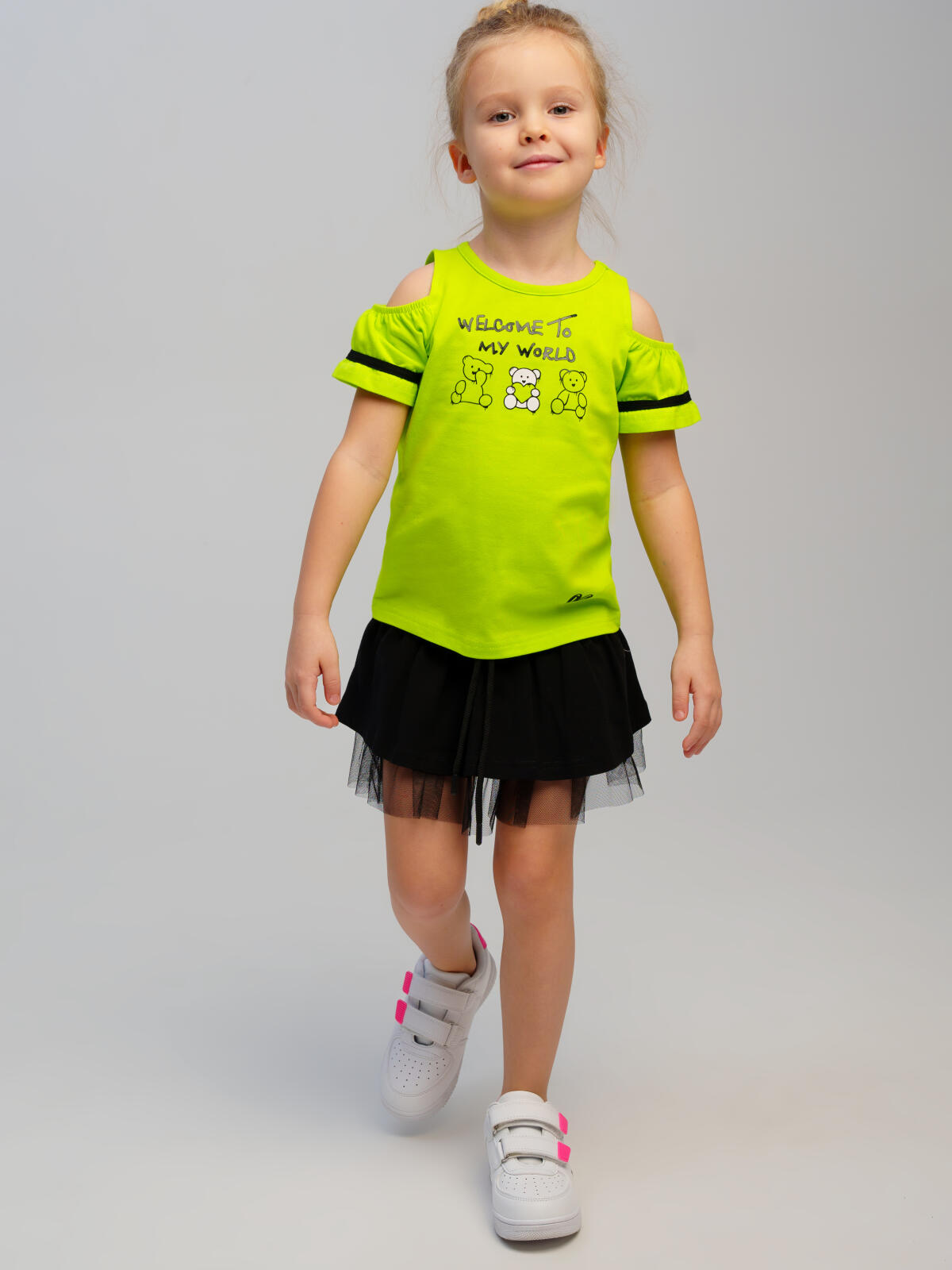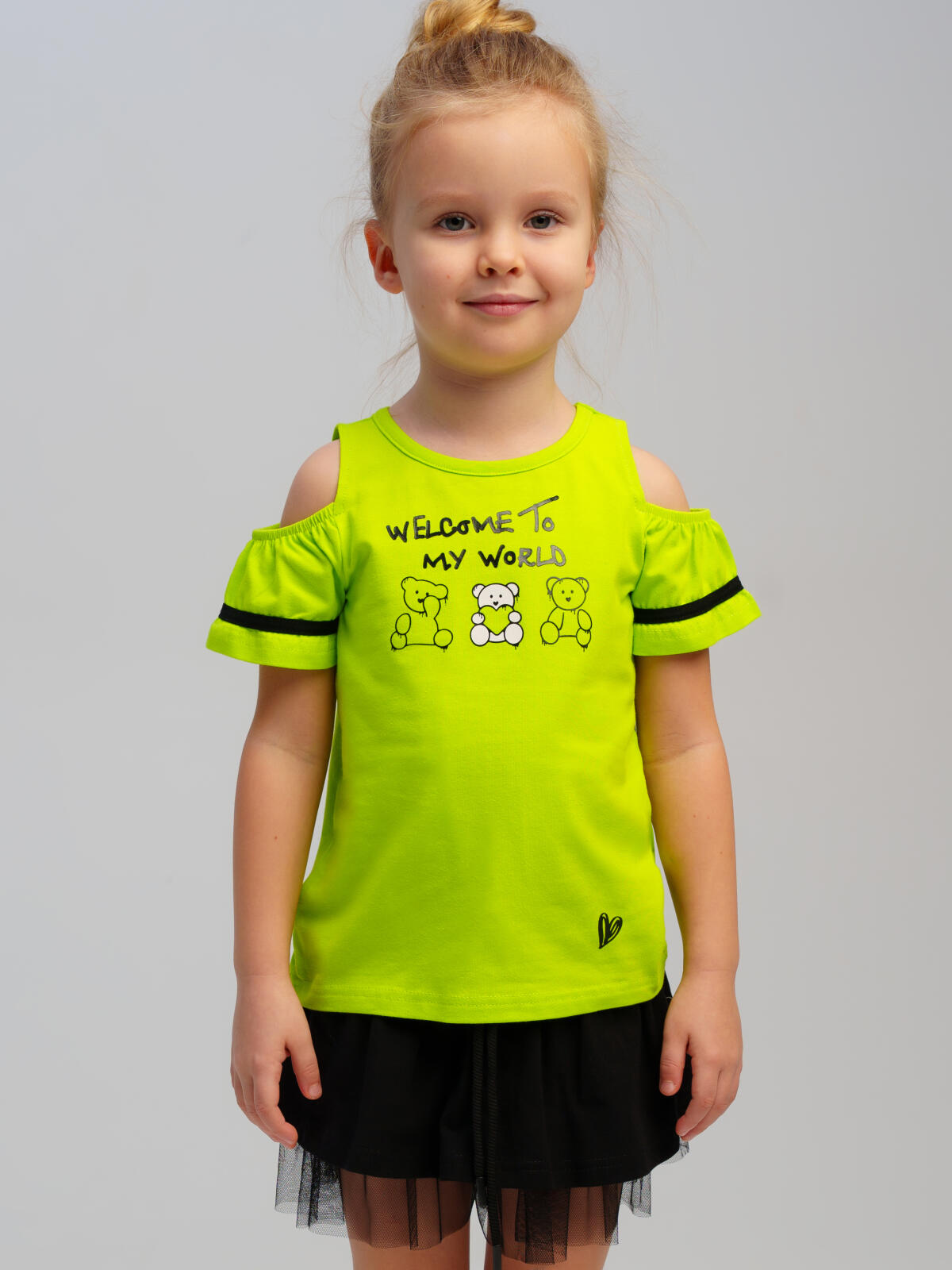 Футболка детская для девочки. Футболка с высоким содержанием хлопка 95%. Благодаря наличию эластана в составе ткани изделие проще в уходе и держит форму. Разрезы. Модель выполнена из качественного и приятного на ощупь трикотажа.