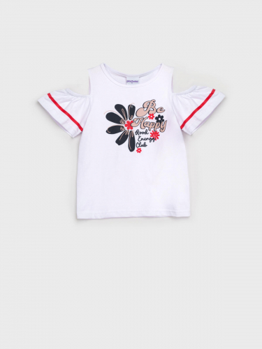 Футболка детская для девочки. Футболка оверсайз из качественного и приятного на ощупь трикотажа джерси с высоким содержанием хлопка 95%. Благодаря наличию эластана в составе ткани изделие проще в уходе и держит форму. Модель выполнена из качественного и приятного на ощупь трикотажа.