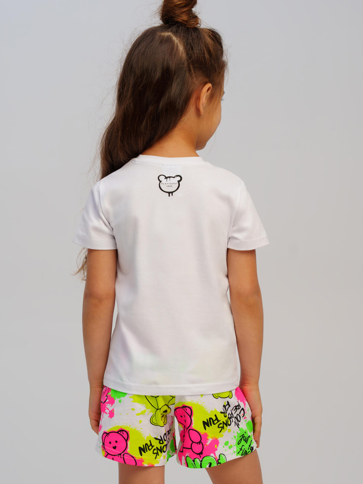 Футболка детская для девочки. Футболка с высоким содержанием хлопка 95%. Благодаря наличию эластана в составе ткани изделие проще в уходе и держит форму. Модель выполнена из качественного и приятного на ощупь трикотажа.