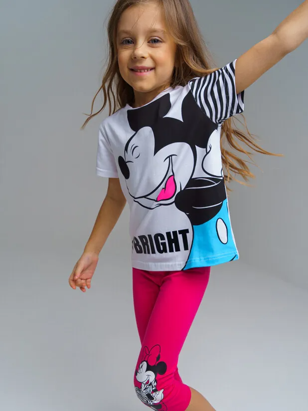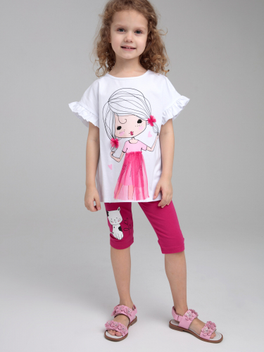 Футболка из качественного приятного на ощупь трикотажа. Размер изделия на фото - 110, параметры модели (см): рост 110, обхват груди-талии-бедер: 58-47-61. Высокое содержание хлопка 95%. Благодаря наличию эластана в составе ткани, изделие проще в уходе и держит форму.