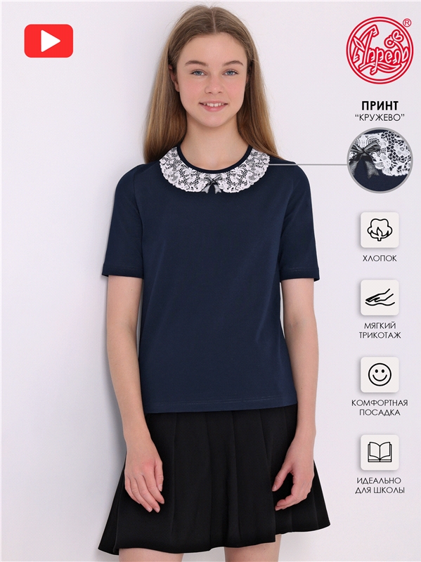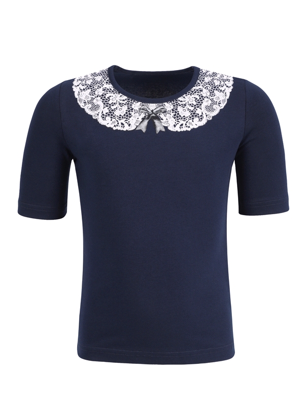 кулир с лайкрой / хлопок 92% + лайкра 8% темно-синий77 / - / Ажурный воротник на темном