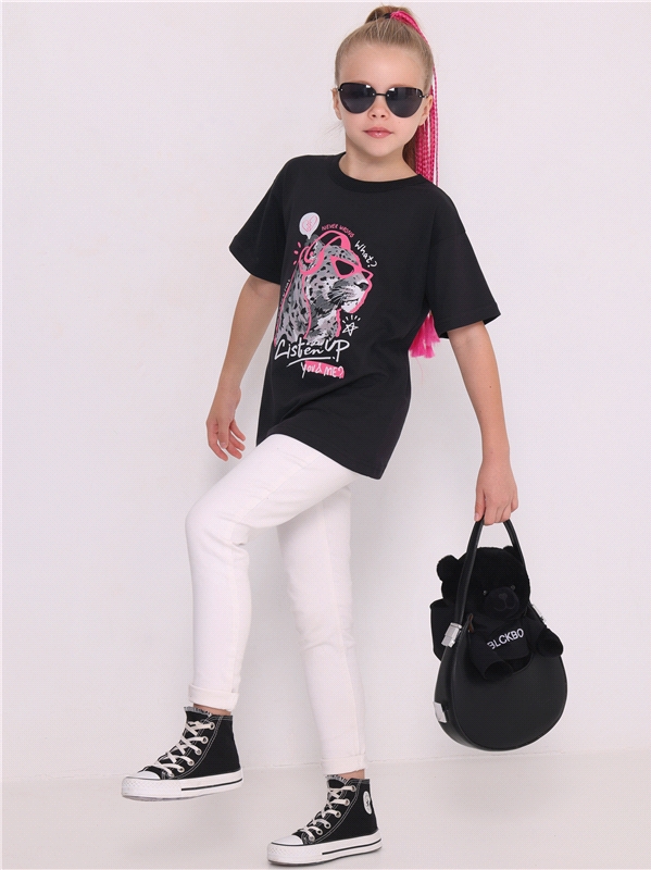 кулир / хлопок 100% черный / - / Леопард розовый неон