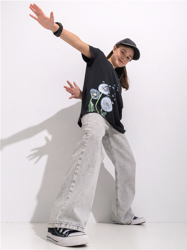 кулир / хлопок 100% черный / - / Одуванчики с листьями