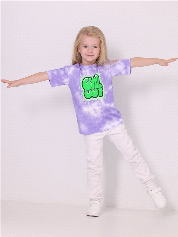 кулир / хлопок 100% - / тай-дай на сиреневом / Чилаут неон
