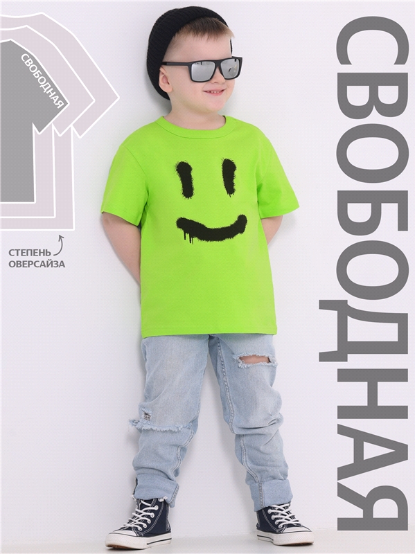 кулир / хлопок 100% ярко-салатовый262 / - / Смайл граффити