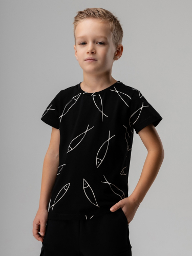 Материал кулирная гладь Состав 92% хлопок 8% лайкра Футболка для детей дошкольного возраста. Футболка свободного силуэта с втачным коротким рукавом. Горловина футболки округлой формы. Состав: кулирная гладь 92% хлопок 8% лайкра.