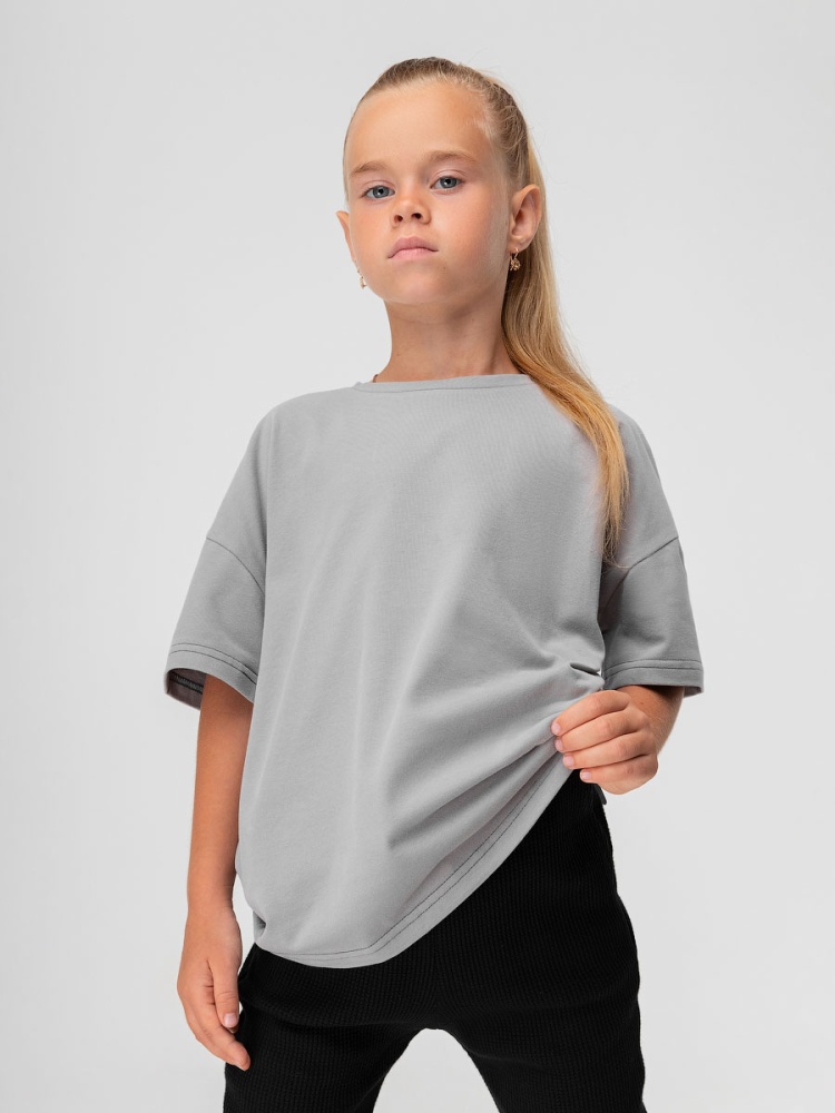 Материал кулирная гладь Состав 92% хлопок 8% лайкра Свободная футболка с эффектом фрчи. Короткий рукав, спущенное плечо.