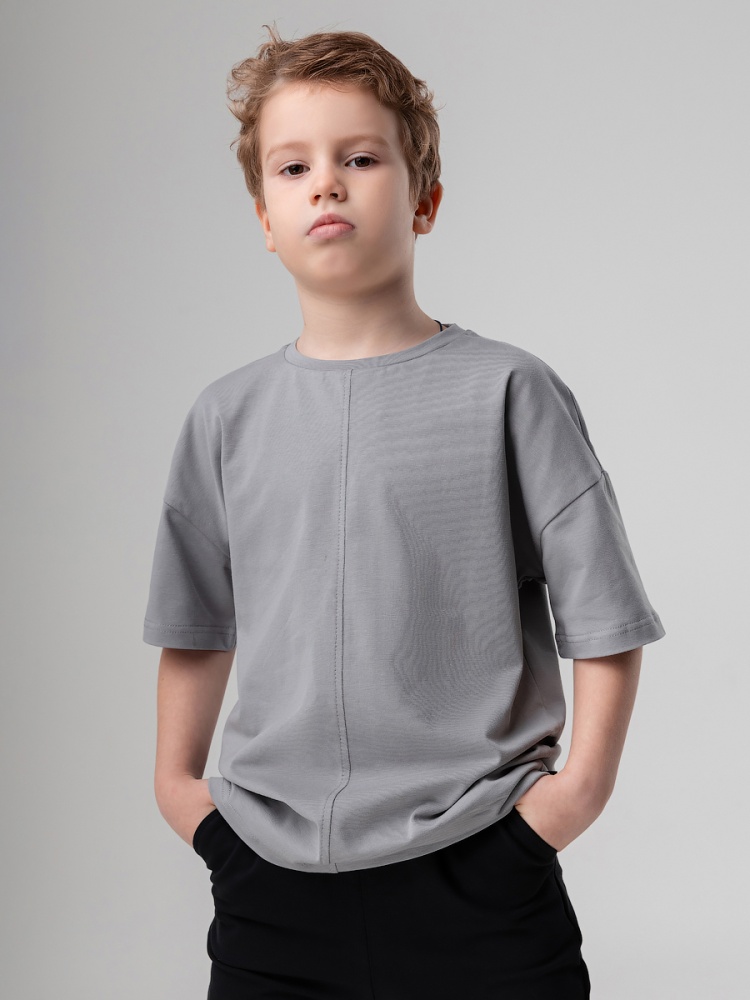 Материал кулирная гладь Состав 92% хлопок 8% лайкра Футболка для детей дошкольного возраста. Футболка свободного силуэта с втачным коротким рукавом. Горловина футболки округлой формы. Состав: кулирная гладь 92% хлопок 8% лайкра