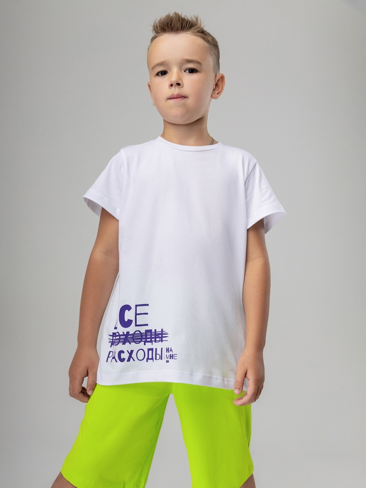 Материал кулирная гладь Состав 92% хлопок 8% лайкра Футболка для детей дошкольного возраста. Футболка свободного силуэта с втачным коротким рукавом. Горловина футболки округлой формы. На полочке нанесена печать.