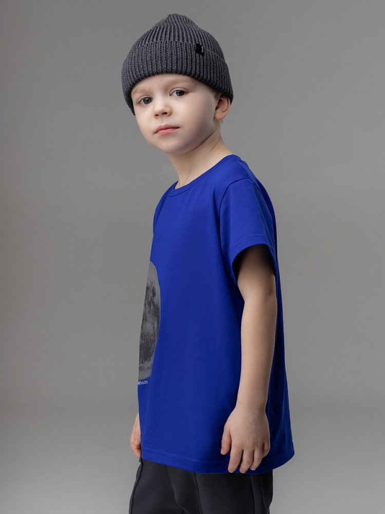 Материал кулирная гладь Состав 92% хлопок 8% лайкра Футболка для детей дошкольного возраста. Футболка свободного силуэта с втачным коротким рукавом. Горловина футболки округлой формы.