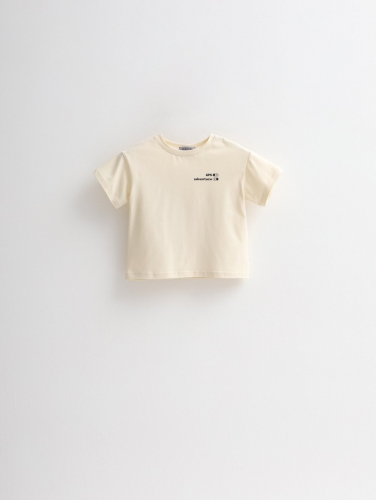 Футболка умеренного объема с округлым вырезом горловины и стильным принтом.