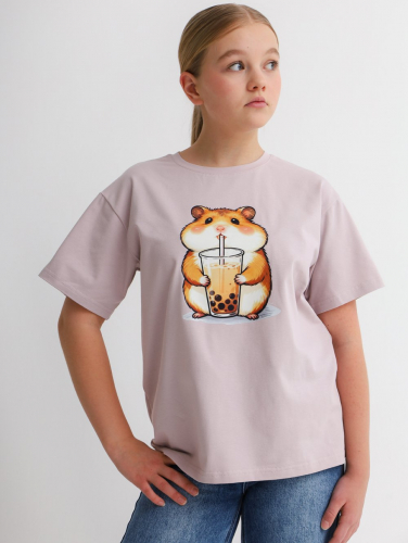 Футболка умеренного объема с округлым вырезом горловины и стильным принтом.