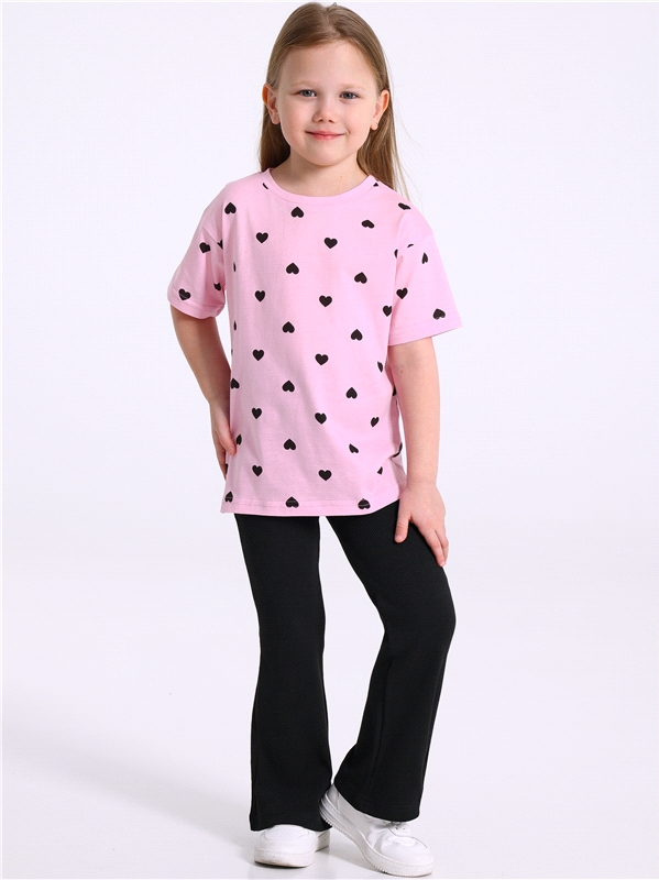 / хлопок 100%, хлопок 95% + лайкра 5% - / черные сердечки на светло-розовом+черный / -