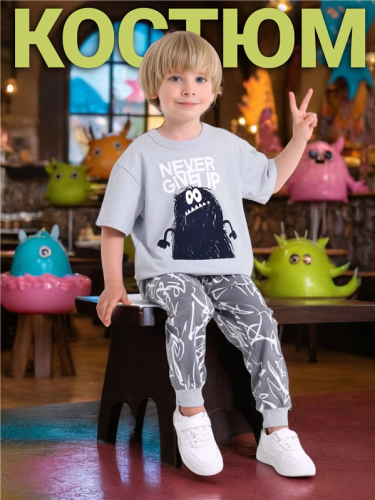кулир / хлопок 100% - / светло-серый183+белые граффити на темно-сером / Сердитый монстрик