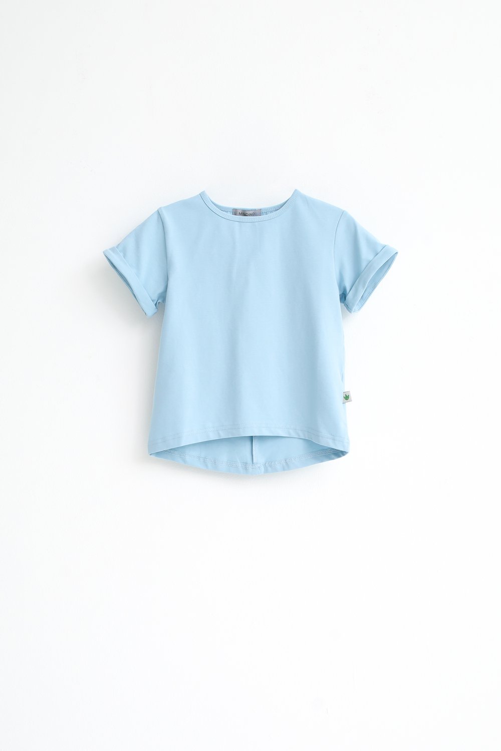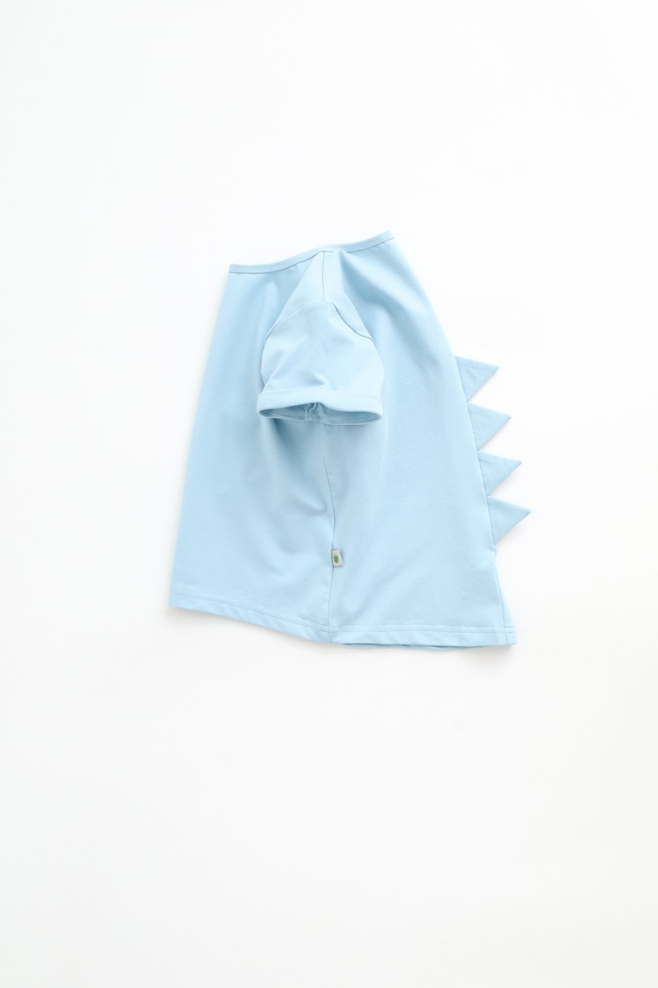 Футболка умеренного объема с декоративными гребнями “Дино” на спинке. Спинка удлиненная, рукава с подворотами.