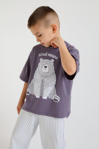 Футболка умеренного объема с декоративными гребнями “Дино” на спинке. Спинка удлиненная, рукава с подворотами.