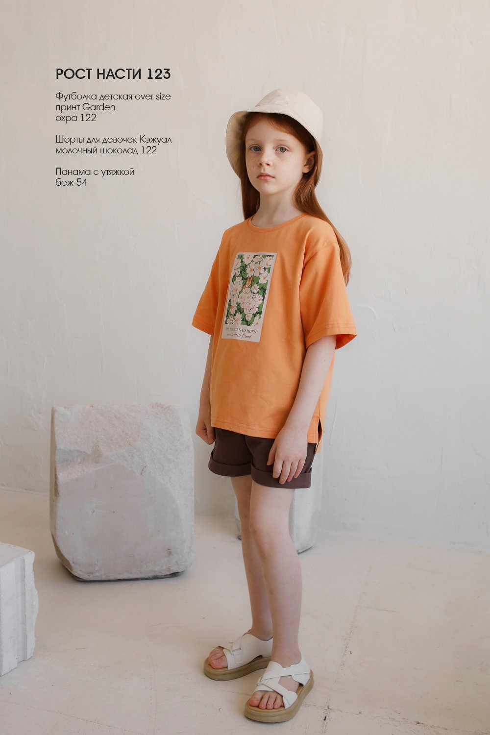 Футболка детская over size принт Garden охра