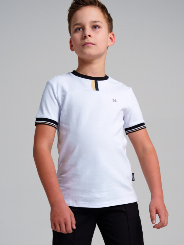 Модная трикотажная футболка с коротким рукавом для мальчика от PlayToday — идеальный выбор для школы, активных будней и стильных повседневных образов.