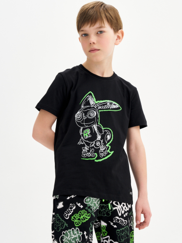 Футболка оверсайз для мальчика с полоской салатового цветы, выполнена из полотна кулирная гладь