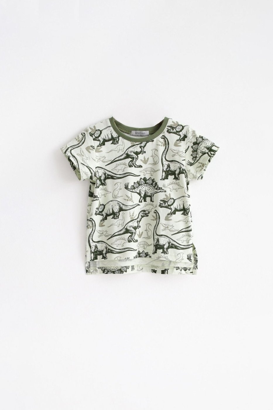 Футболка-фуфайка детская с разрезами принт Динозавры светло-зеленый