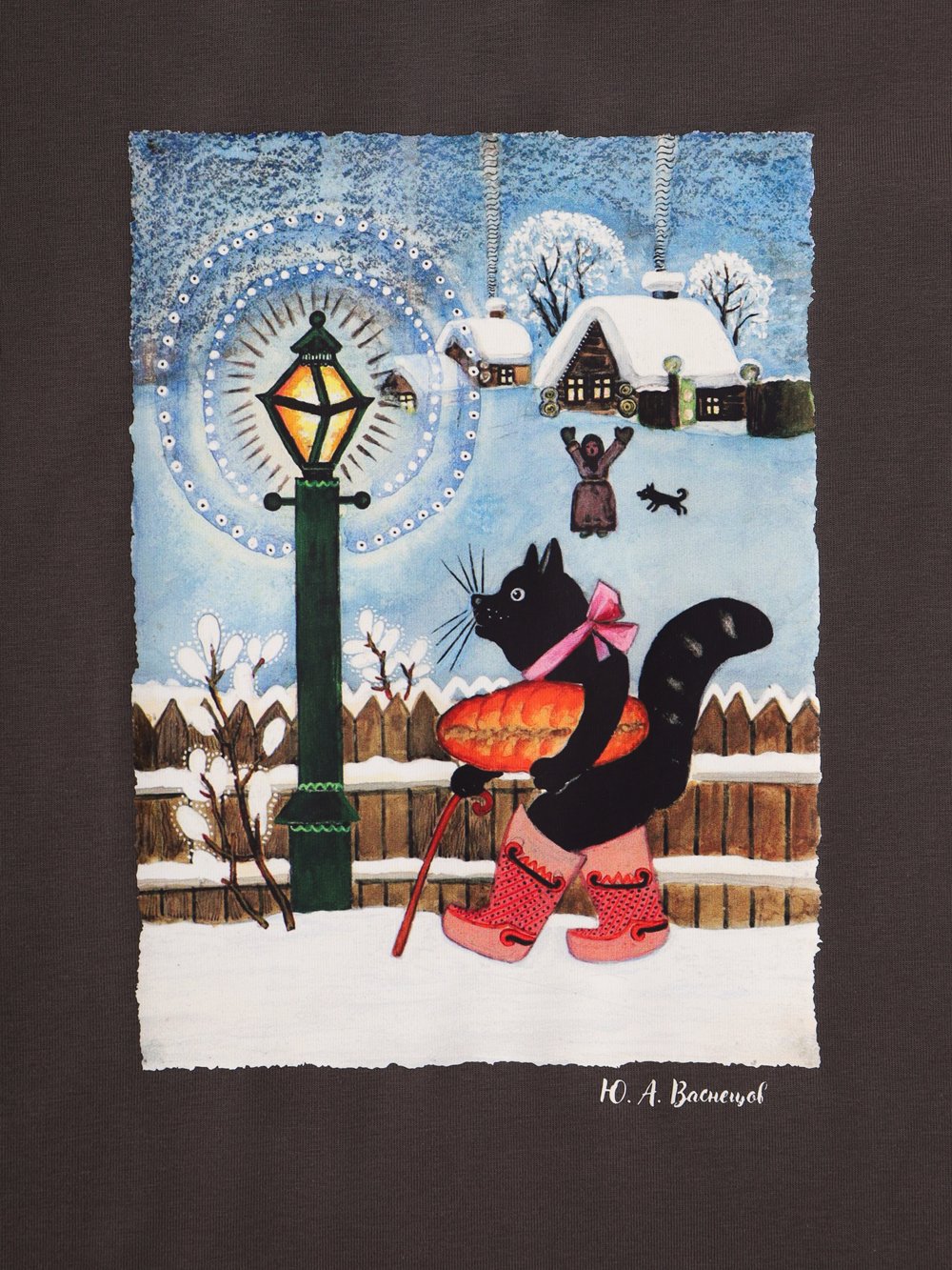 Базовая футболка умеренного объема с круглым вырезом горловины и принтом-иллюстрацией Юрия Васнецова.
