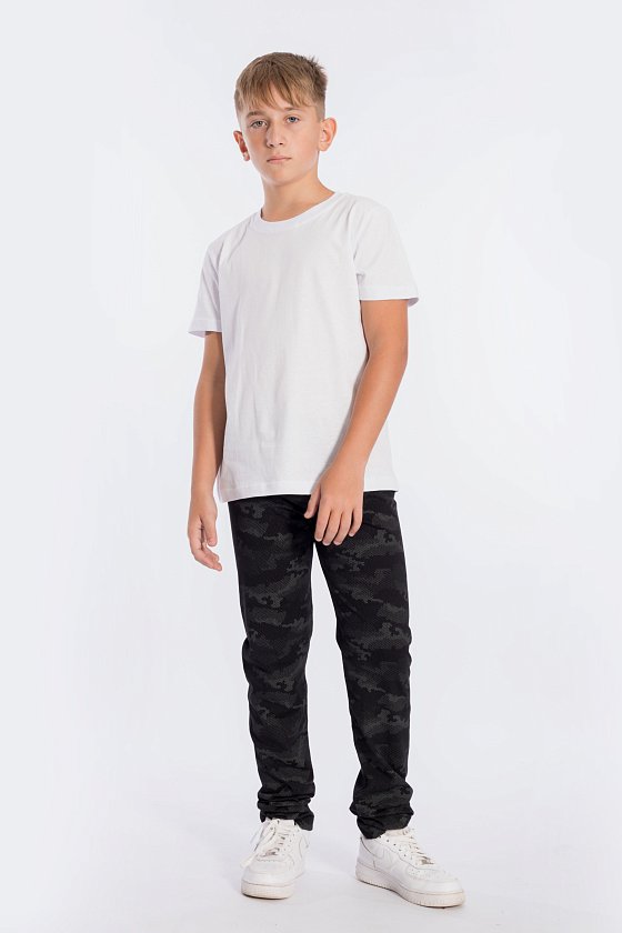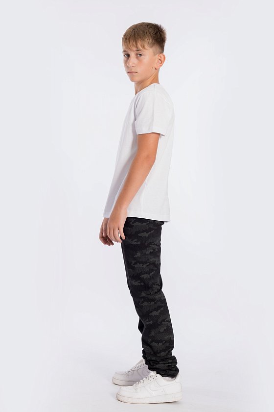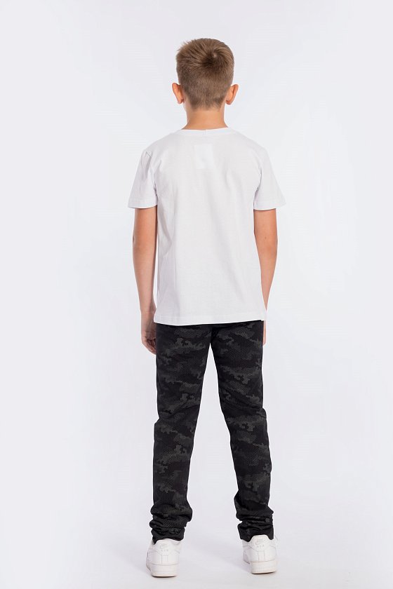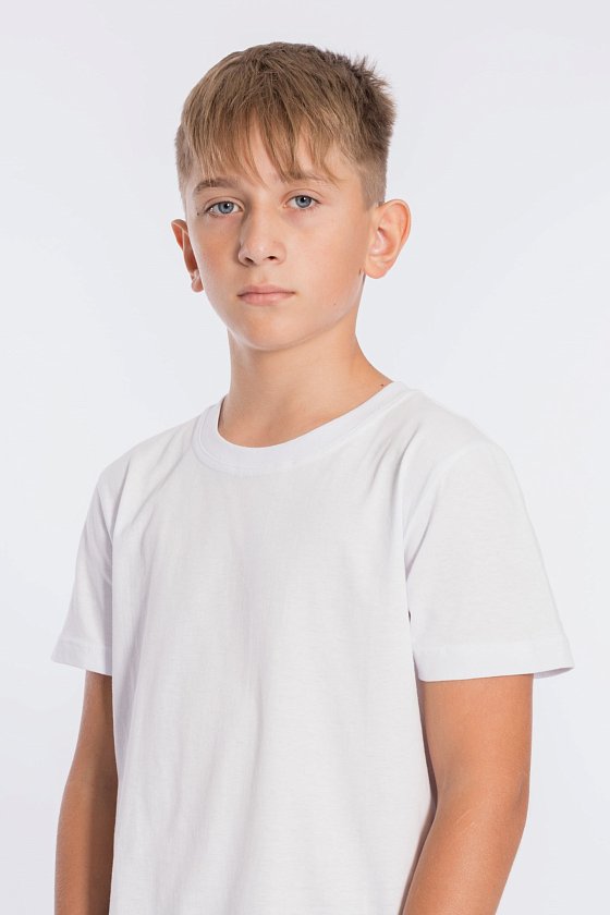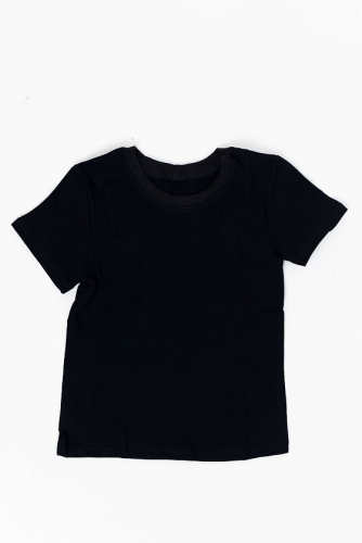 Футболка выполнена из хлопкового полотна, с коротким рукавом и круглым вырезом горловины.