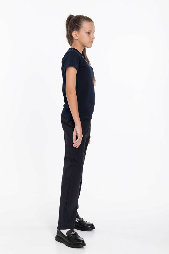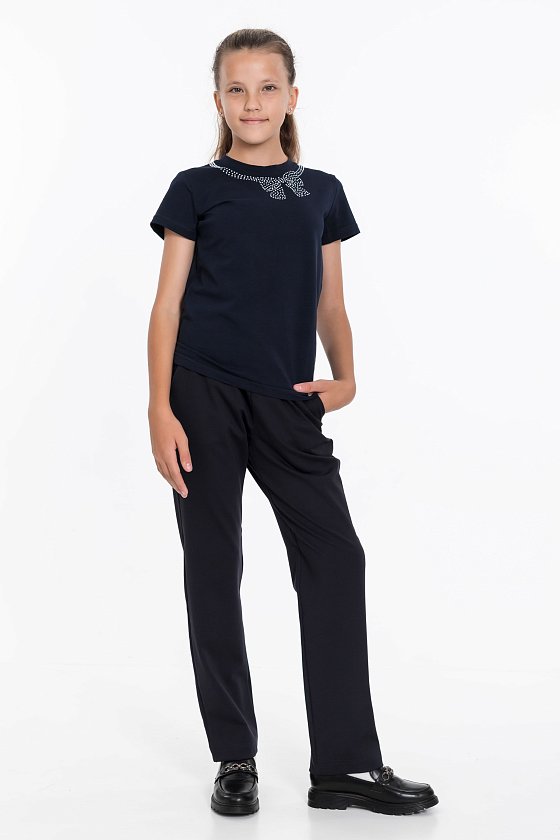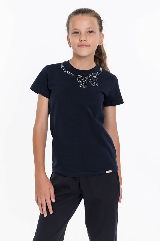 Футболка на девочку с принтом спереди, выполнена из хлопка с лайкрой, с коротким рукавом. Отличный вариант для повседневной носки и школы.