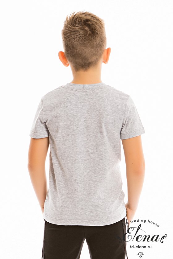 Футболка с коротким рукавом из однотонной кулирки с лайкрой. Вырез горловины круглый, рукава короткие. Спереди расположен красивый принт.