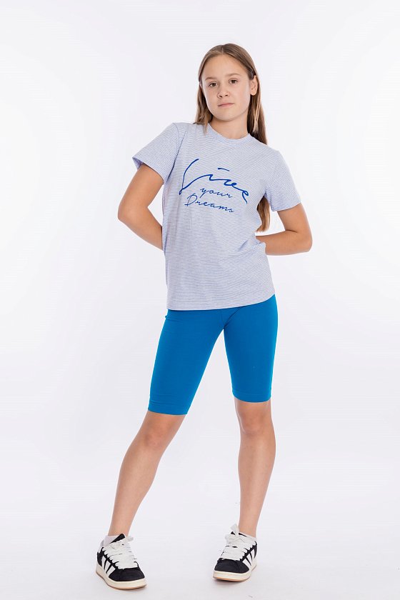Футболка детская выполнена из х/б полотна с лайкрой. С коротким рукавом и круглым вырезом горловины. Спереди нанесён принт.