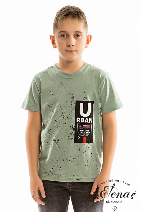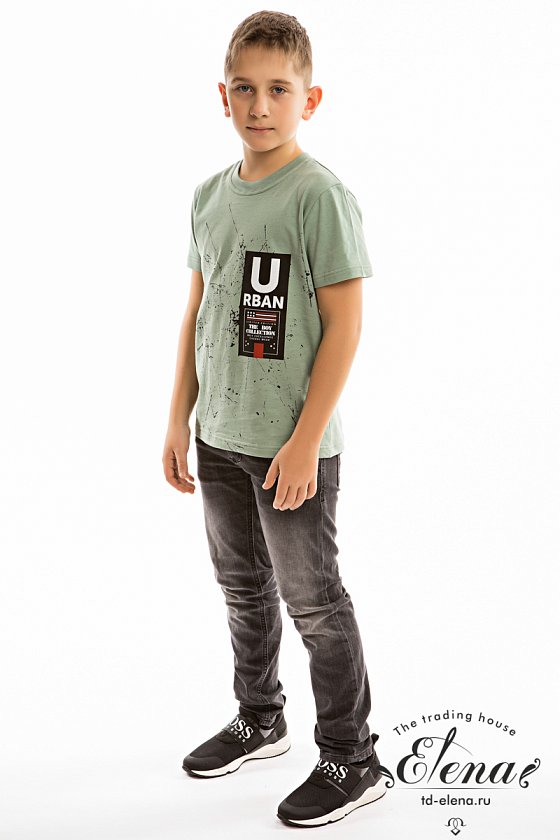 Футболка выполнена из хлопкового полотна, с коротким рукавом и круглым вырезом горловины. Спереди нанесён принт.