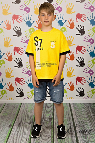 Футболка для мальчика из кулирки. Круглый вырез горловины, втачной рукав.