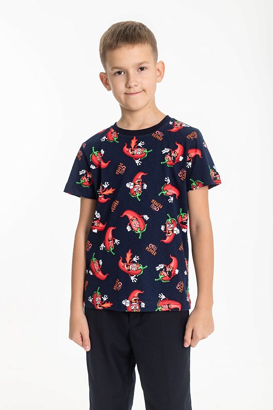 Футболка для мальчика из кулирки. Круглый вырез горловины, втачной рукав.