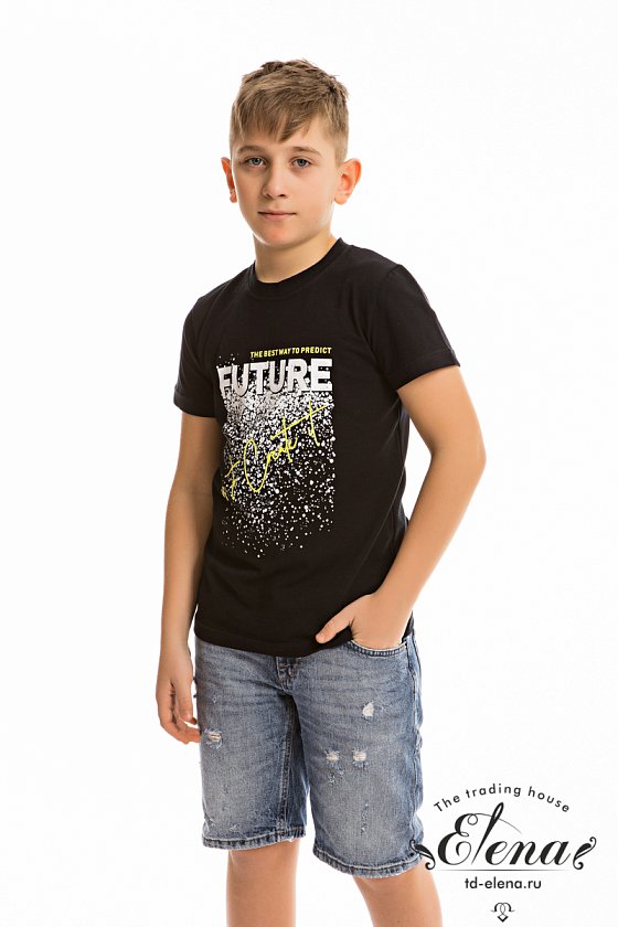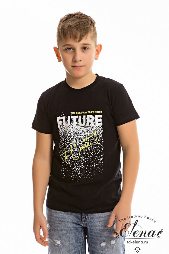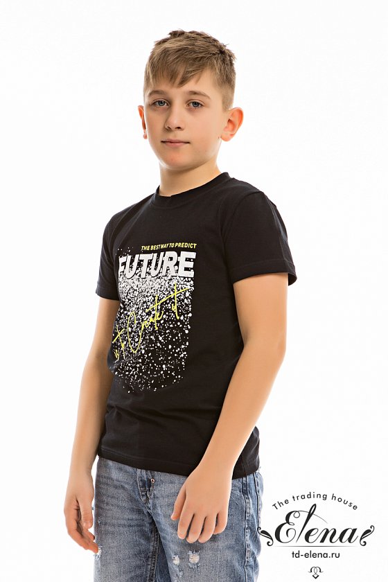 Футболка детская выполнена из х/б полотна с лайкрой. С коротким рукавом и круглым вырезом горловины. Спереди нанесён принт.