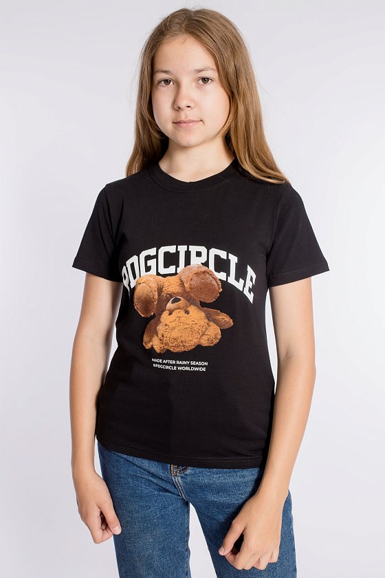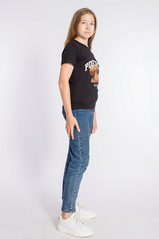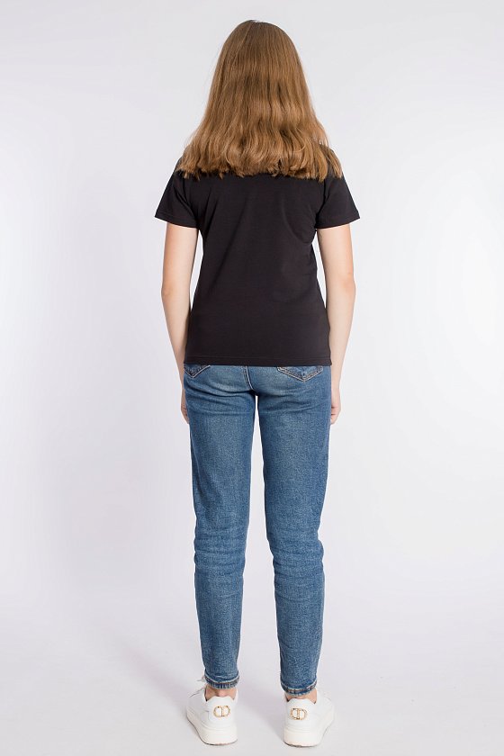 Футболка из х/б полотна с лайкрой, с коротким рукавом и круглым вырезом горловины. Спереди расположен принт.