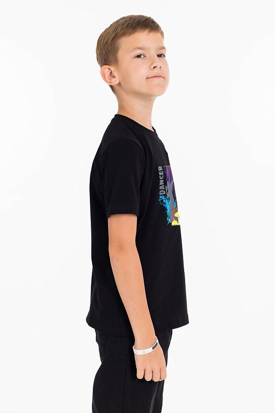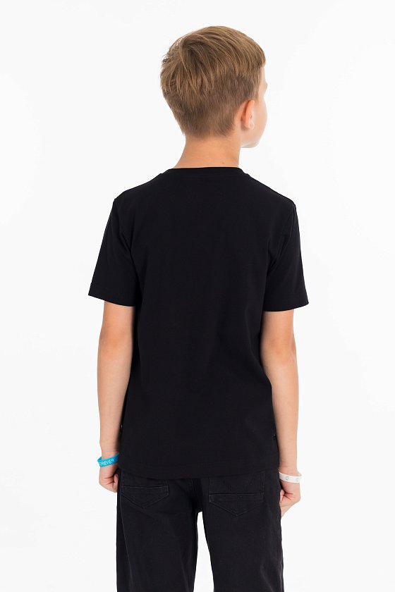 Футболка выполнена из хлопкового полотна с добавлением лайкры. Футболка с круглым вырезом горловины и принтом спереди.